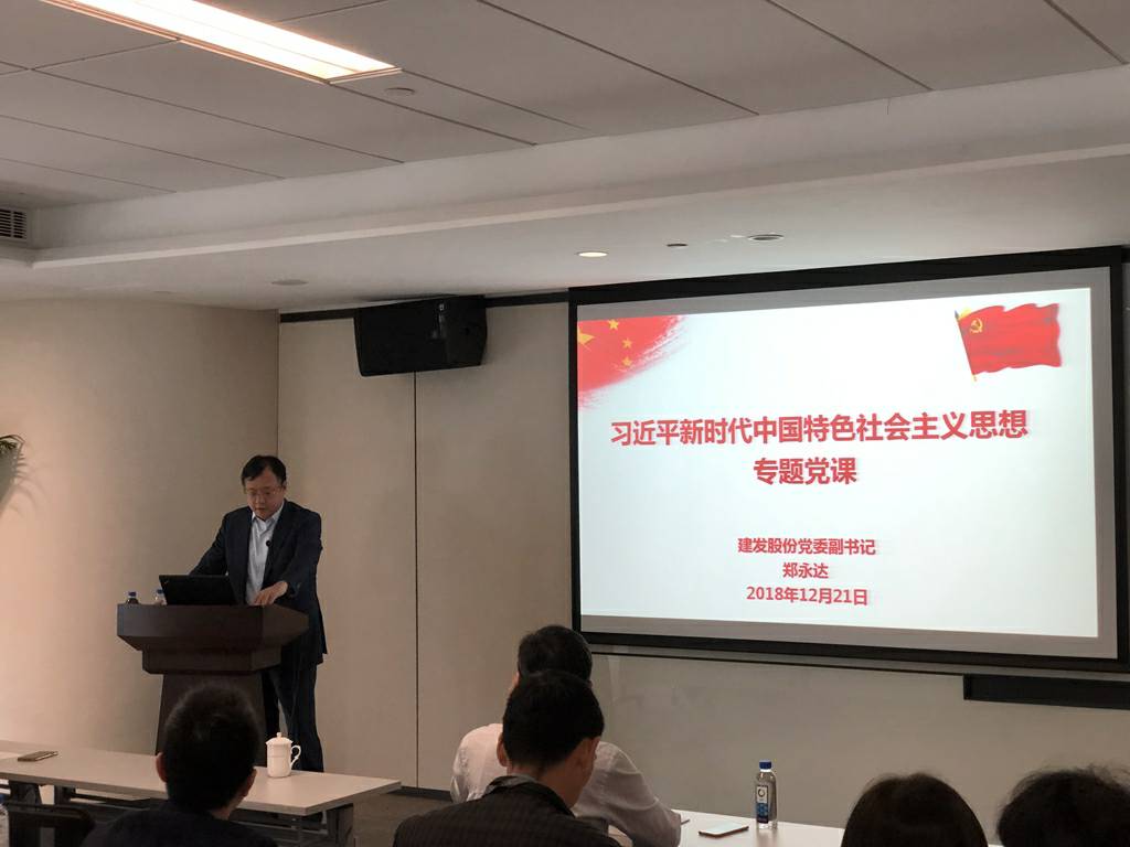 2018年12月21日,南宫体育平台官方网站-南宫(中国)党委副书记郑永达同志在建发大厦23楼大会议室给纸业公司的党员们做了一次习近平新时代中国特色社会主义思想专题的党课分享。
